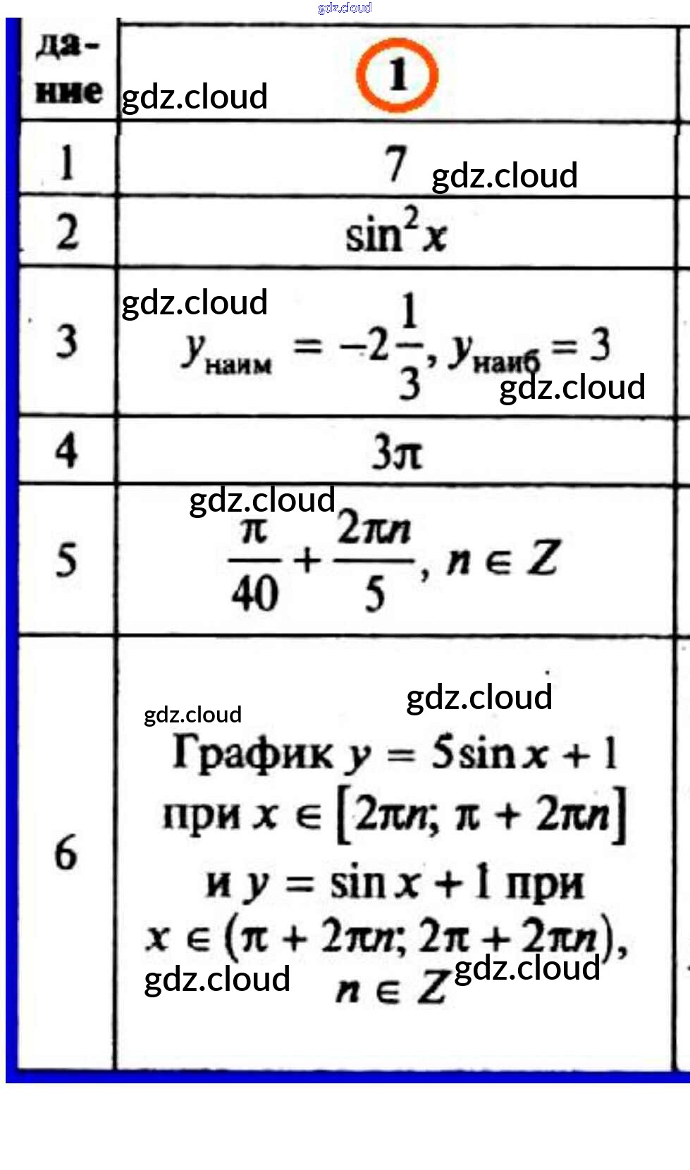Ответ на задание 1 Контрольно-измерительные материалы (КИМ) Алгебра за 10 (десятый) класс Рурукин 2017