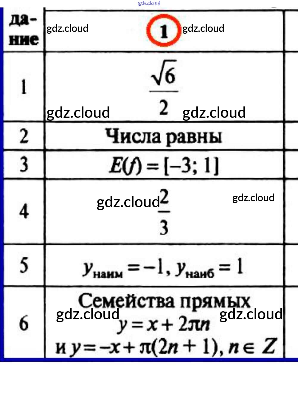 Ответ на задание 1 Контрольно-измерительные материалы (КИМ) Алгебра за 10 (десятый) класс Рурукин 2017