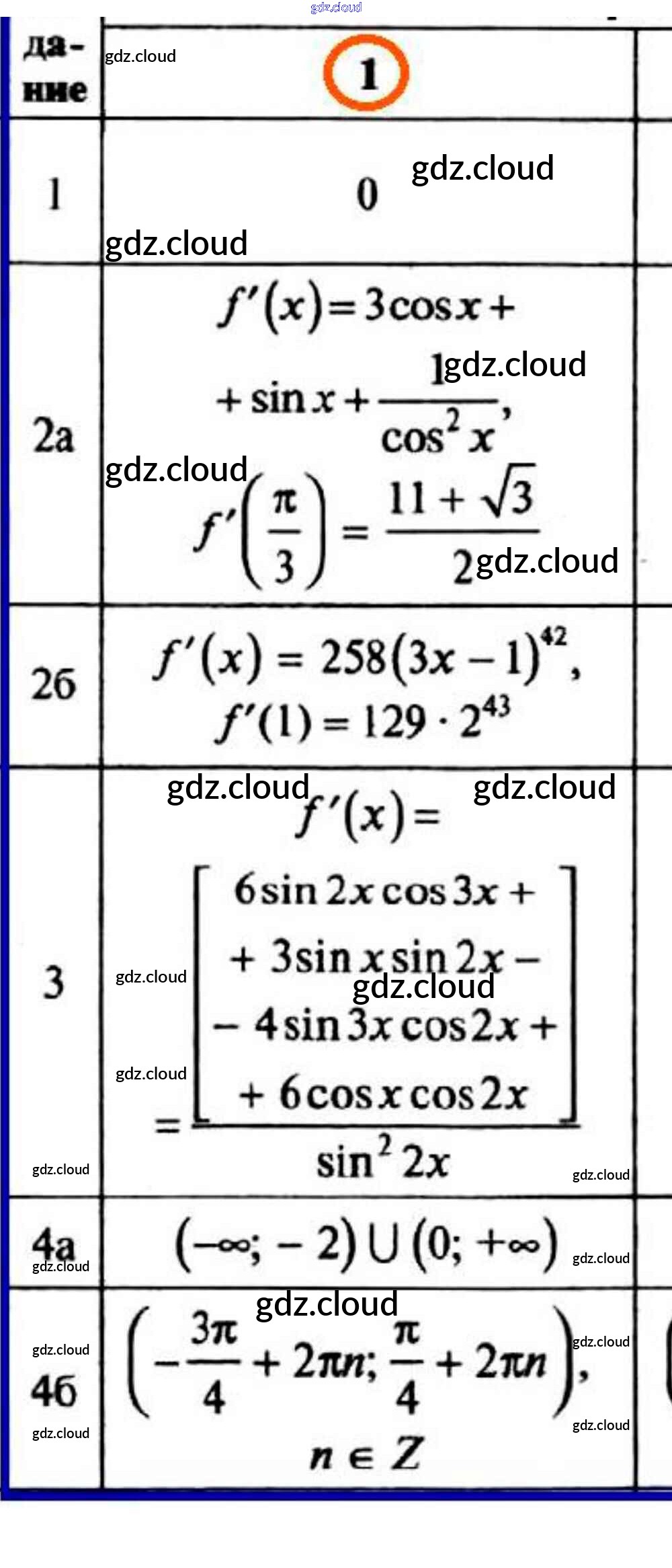 Ответ на задание 1 Контрольно-измерительные материалы (КИМ) Алгебра за 10 (десятый) класс Рурукин 2017