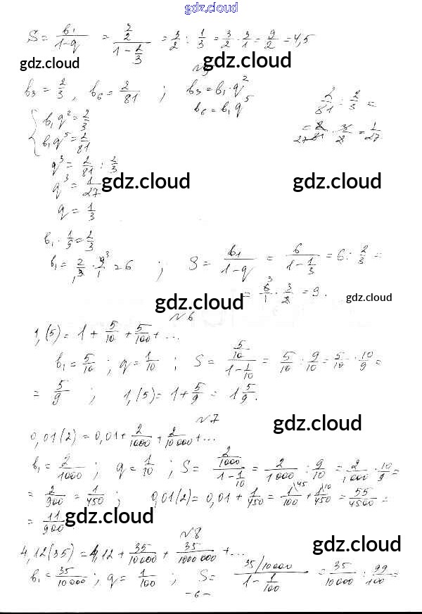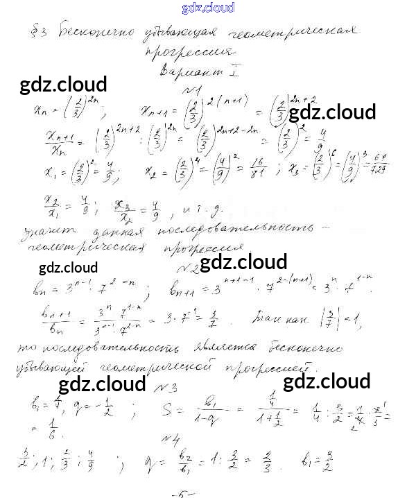 §3. Бесконечно убывающая геометрическая прогрессия Ответы к Главе 1. Действительные числа по Алгебре 10 класс Дидактические материалы Шабунин Базовый и углубленный уровень Просвещение