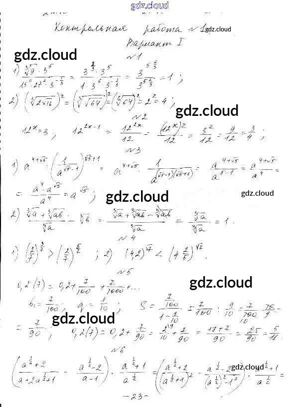 Контрольная работа №1 Ответы к Главе 1. Действительные числа по Алгебре 10 класс Дидактические материалы Шабунин Базовый и углубленный уровень Просвещение