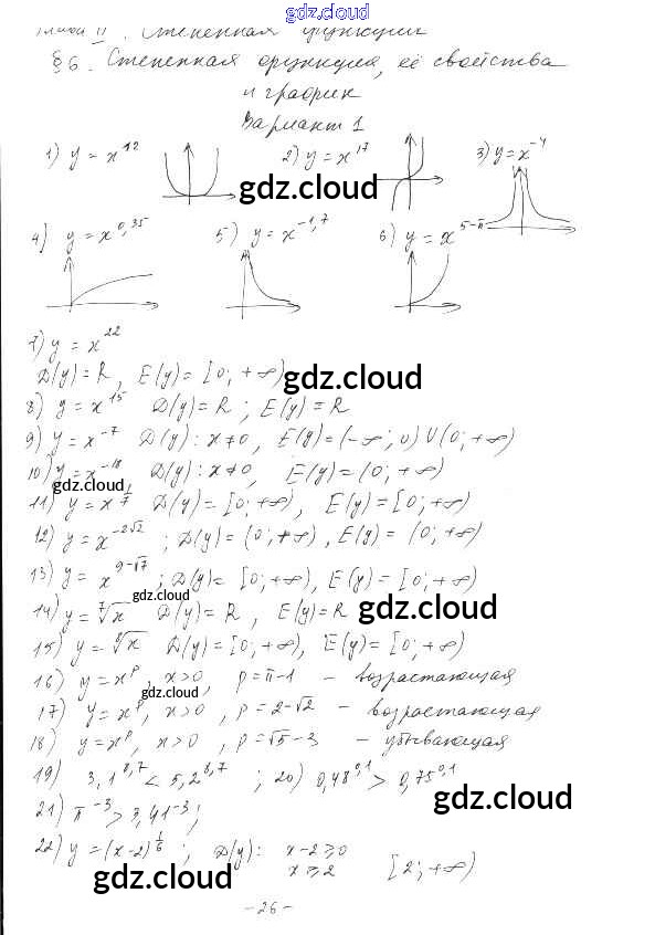 §6. Степенная функция, её свойства и график Ответы к Главе 2. Степенная функция по Алгебре 10 класс Дидактические материалы Шабунин Базовый и углубленный уровень Просвещение