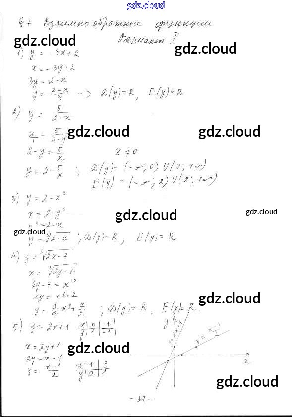 §7. Взаимно обратные функции Ответы к Главе 2. Степенная функция по Алгебре 10 класс Дидактические материалы Шабунин Базовый и углубленный уровень Просвещение