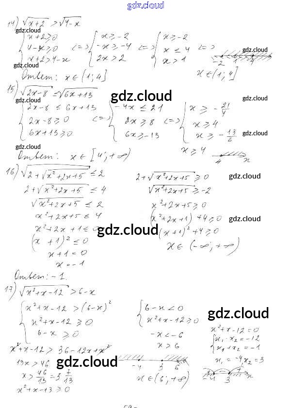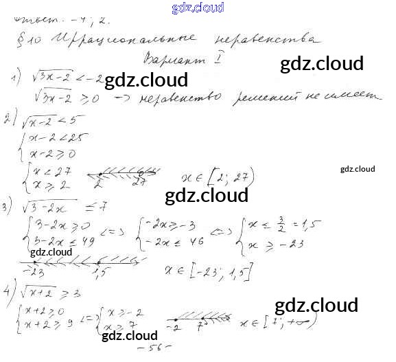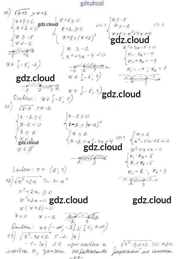 §10. Иррациональные неравенства Ответы к Главе 2. Степенная функция по Алгебре 10 класс Дидактические материалы Шабунин Базовый и углубленный уровень Просвещение