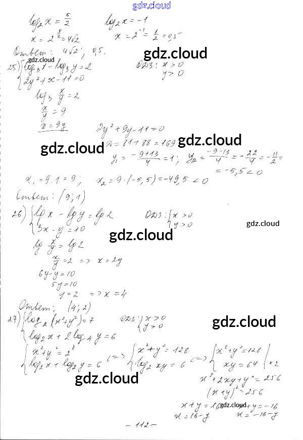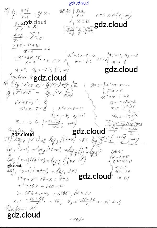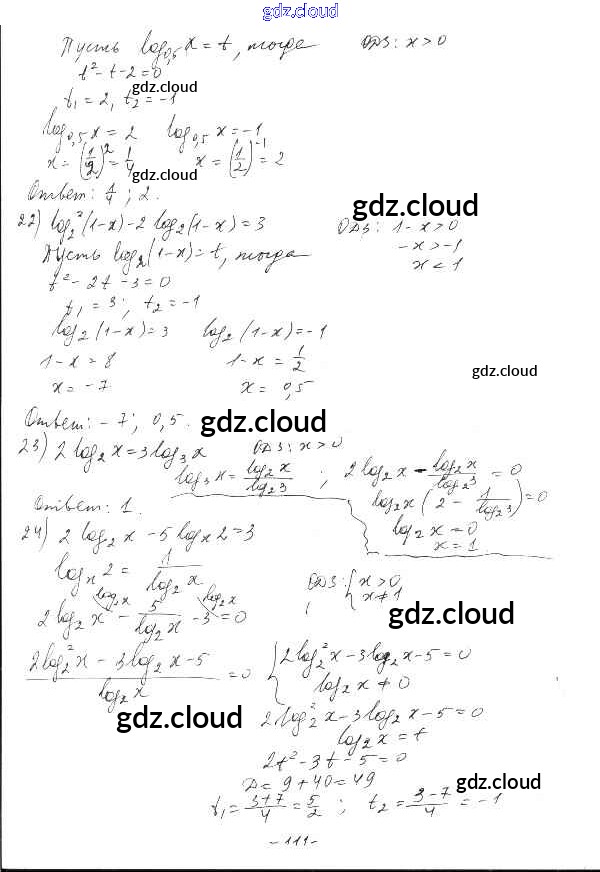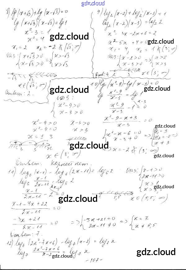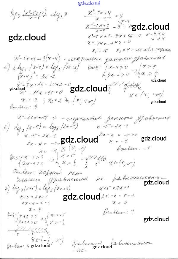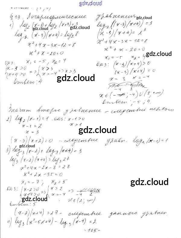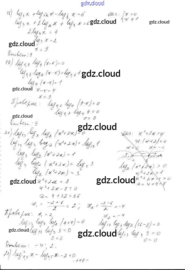 §19. Логарифмические уравнения Ответы к Главе 4. Логарифмическая функция по Алгебре 10 класс Дидактические материалы Шабунин Базовый и углубленный уровень Просвещение