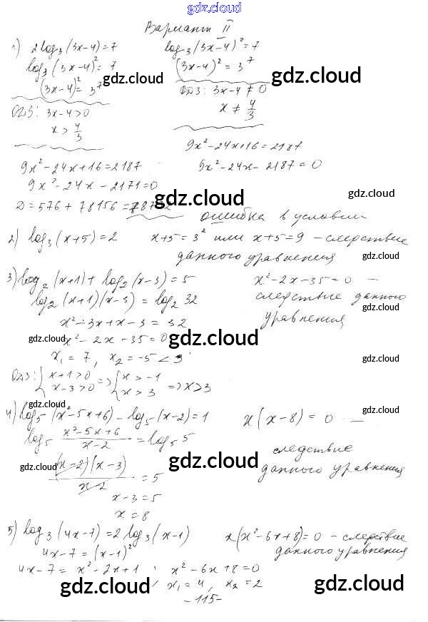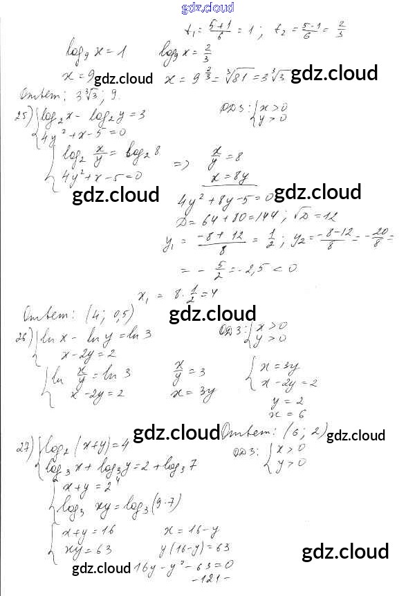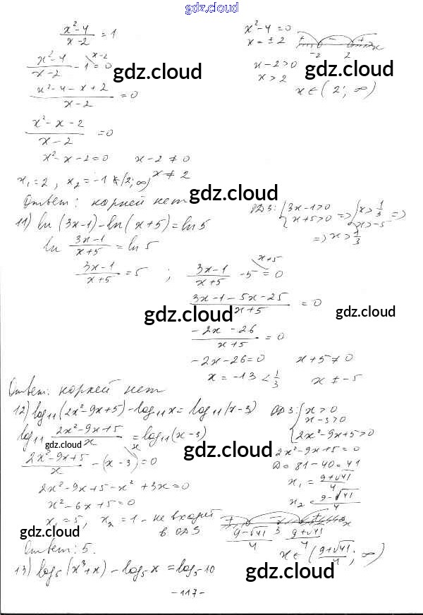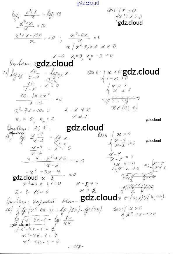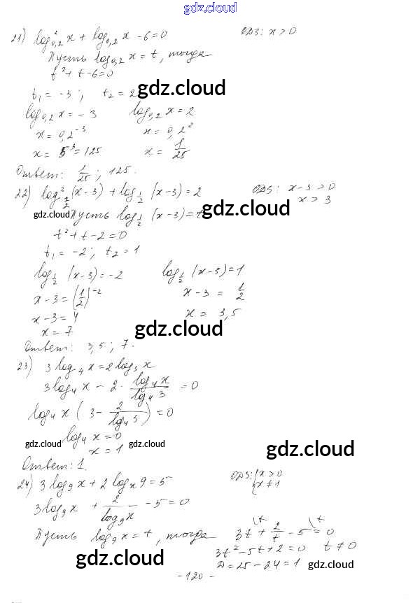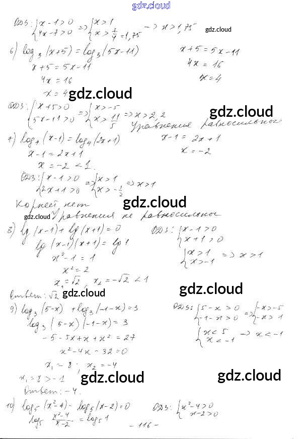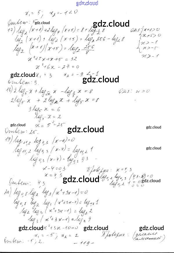 §19. Логарифмические уравнения Ответы к Главе 4. Логарифмическая функция по Алгебре 10 класс Дидактические материалы Шабунин Базовый и углубленный уровень Просвещение