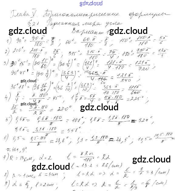 §21. Радианная мера угла Ответы к Главе 5. Тригонометрические формулы по Алгебре 10 класс Дидактические материалы Шабунин Базовый и углубленный уровень Просвещение