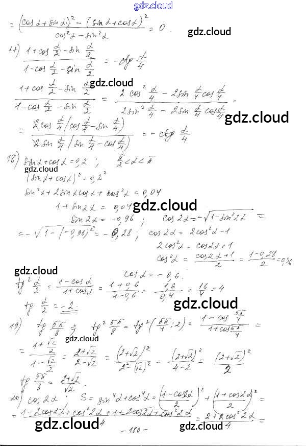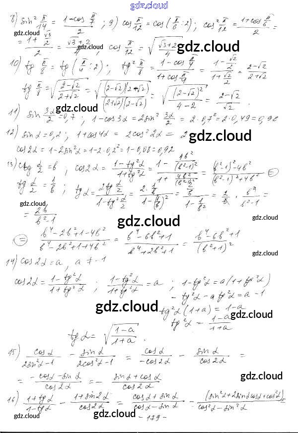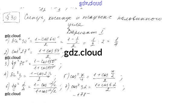 §30. Синус, косинус и тангенс половинного угла Ответы к Главе 5. Тригонометрические формулы по Алгебре 10 класс Дидактические материалы Шабунин Базовый и углубленный уровень Просвещение