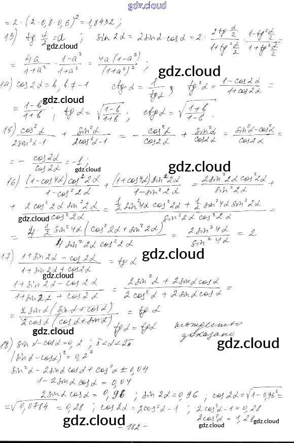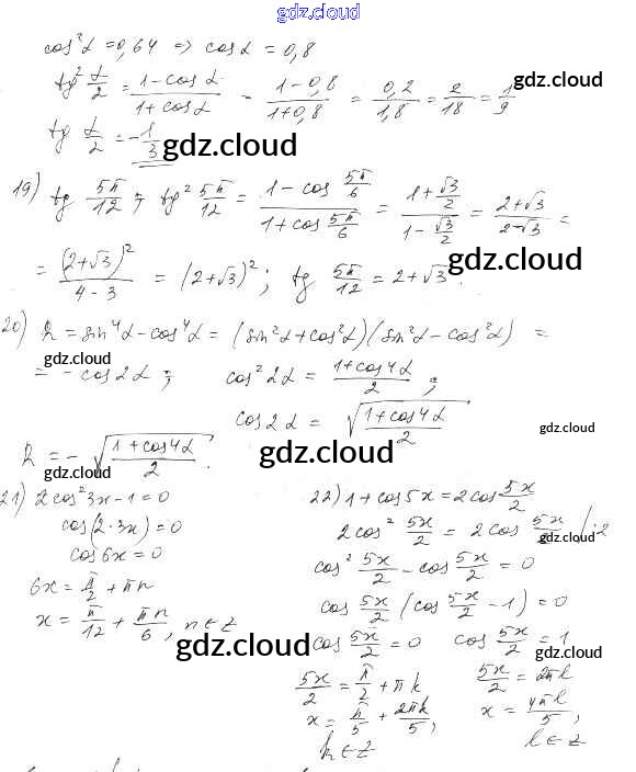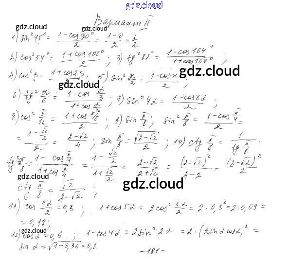 §30. Синус, косинус и тангенс половинного угла Ответы к Главе 5. Тригонометрические формулы по Алгебре 10 класс Дидактические материалы Шабунин Базовый и углубленный уровень Просвещение