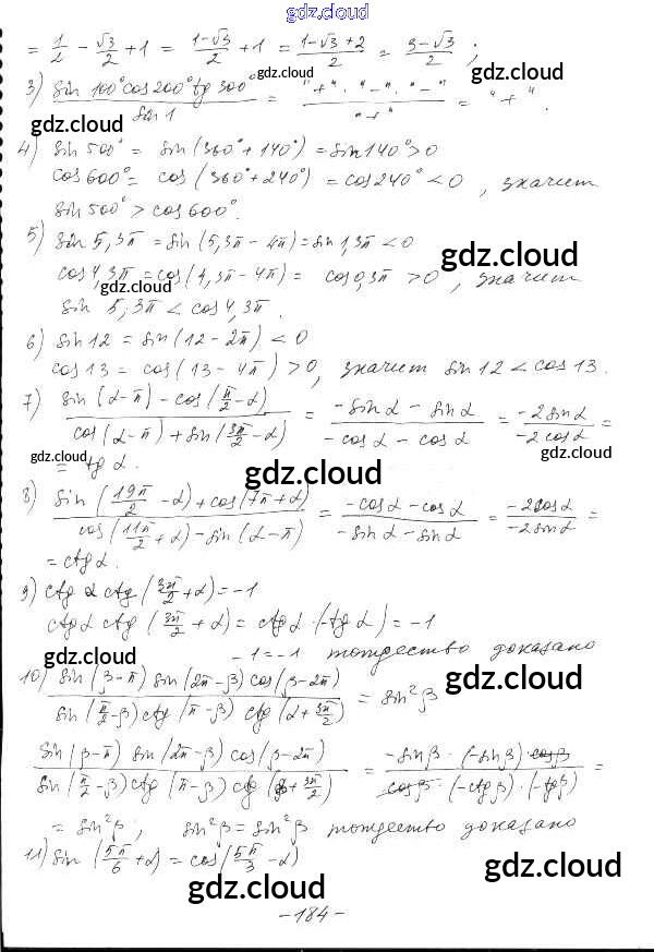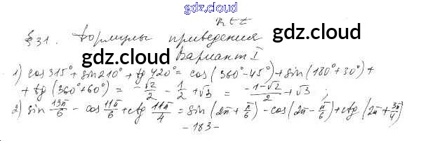 §31. Формулы приведения Ответы к Главе 5. Тригонометрические формулы по Алгебре 10 класс Дидактические материалы Шабунин Базовый и углубленный уровень Просвещение