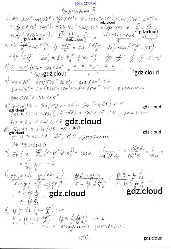 §31. Формулы приведения Ответы к Главе 5. Тригонометрические формулы по Алгебре 10 класс Дидактические материалы Шабунин Базовый и углубленный уровень Просвещение