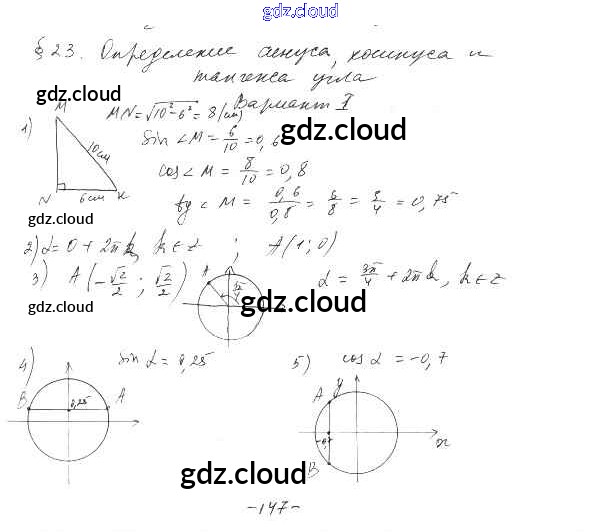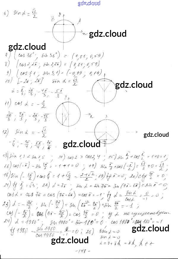 §23. Определение синуса, косинуса и тангенса угла Ответы к Главе 5. Тригонометрические формулы по Алгебре 10 класс Дидактические материалы Шабунин Базовый и углубленный уровень Просвещение