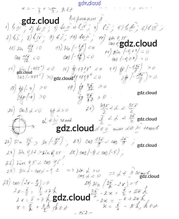 §24. Знаки синуса, косинуса и тангенса Ответы к Главе 5. Тригонометрические формулы по Алгебре 10 класс Дидактические материалы Шабунин Базовый и углубленный уровень Просвещение