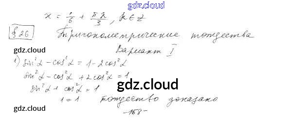 §26. Тригонометрические тождества Ответы к Главе 5. Тригонометрические формулы по Алгебре 10 класс Дидактические материалы Шабунин Базовый и углубленный уровень Просвещение
