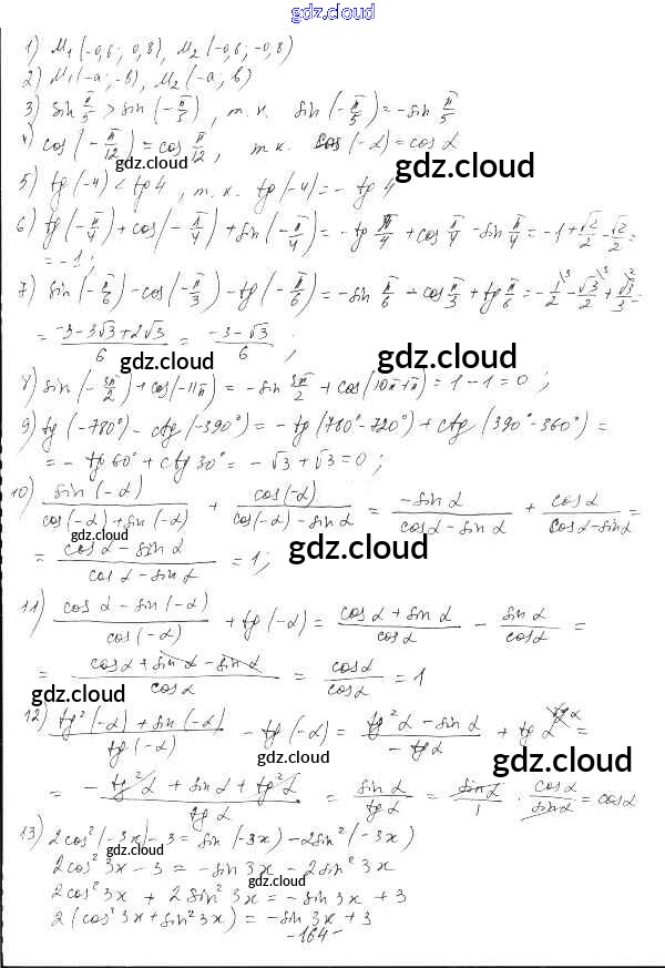 §27. Синус, косинус и тангенс углов а и -а Ответы к Главе 5. Тригонометрические формулы по Алгебре 10 класс Дидактические материалы Шабунин Базовый и углубленный уровень Просвещение