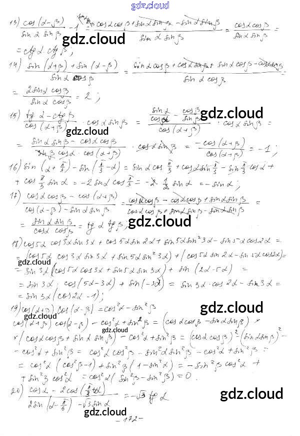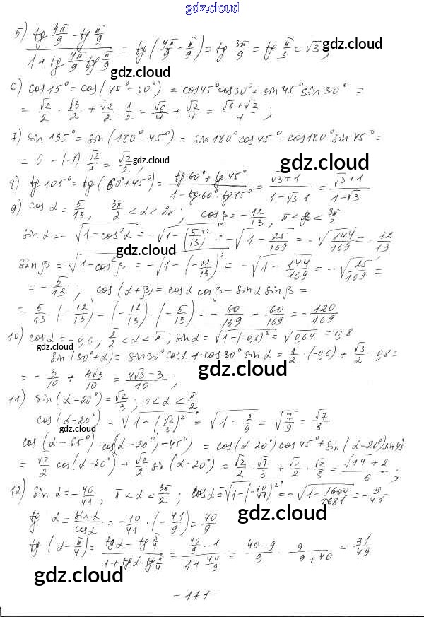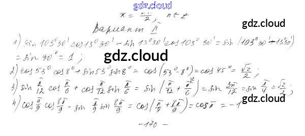 §28. Формулы сложения Ответы к Главе 5. Тригонометрические формулы по Алгебре 10 класс Дидактические материалы Шабунин Базовый и углубленный уровень Просвещение