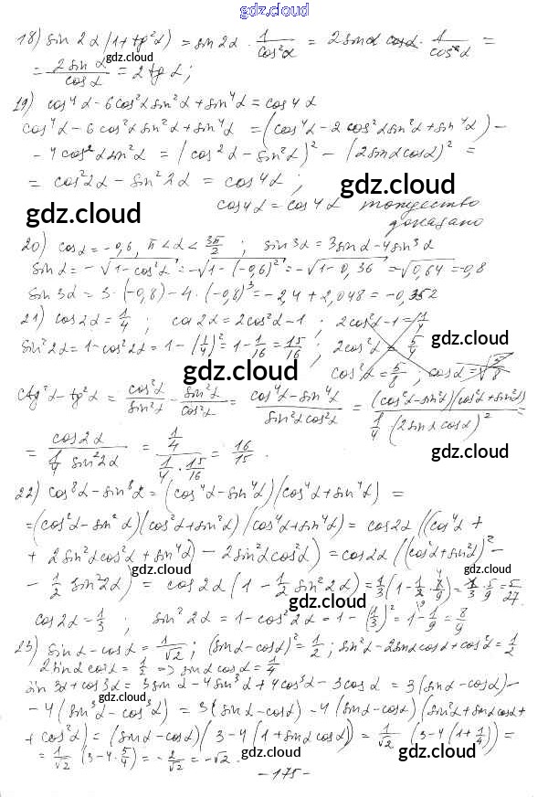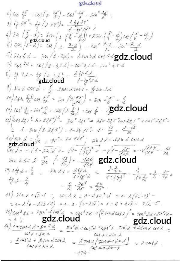 §29. Синус, косинус и тангенс двойного угла Ответы к Главе 5. Тригонометрические формулы по Алгебре 10 класс Дидактические материалы Шабунин Базовый и углубленный уровень Просвещение