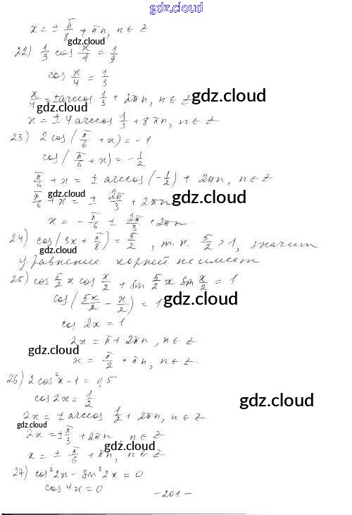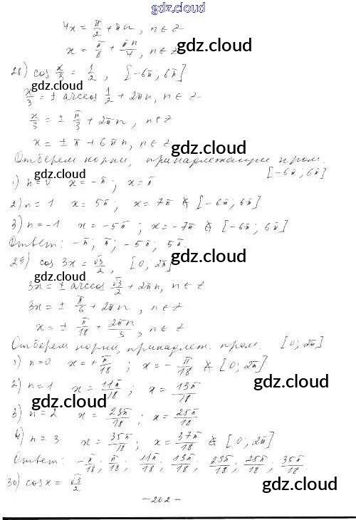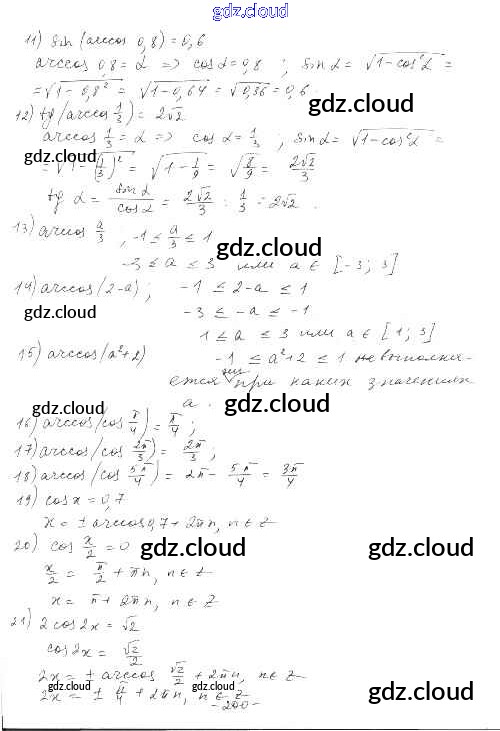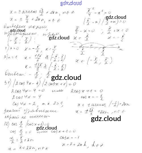 §33. Уравнение cos л: = а Ответы к Главе 6. Тригонометрические уравнения по Алгебре 10 класс Дидактические материалы Шабунин Базовый и углубленный уровень Просвещение