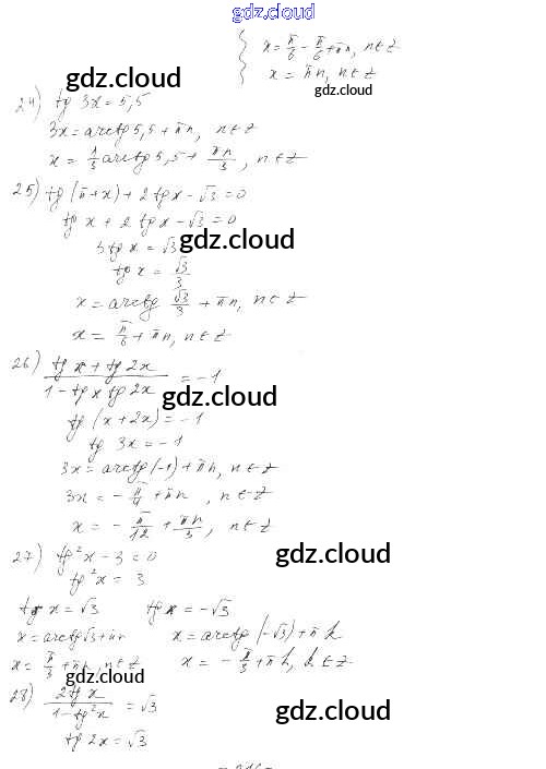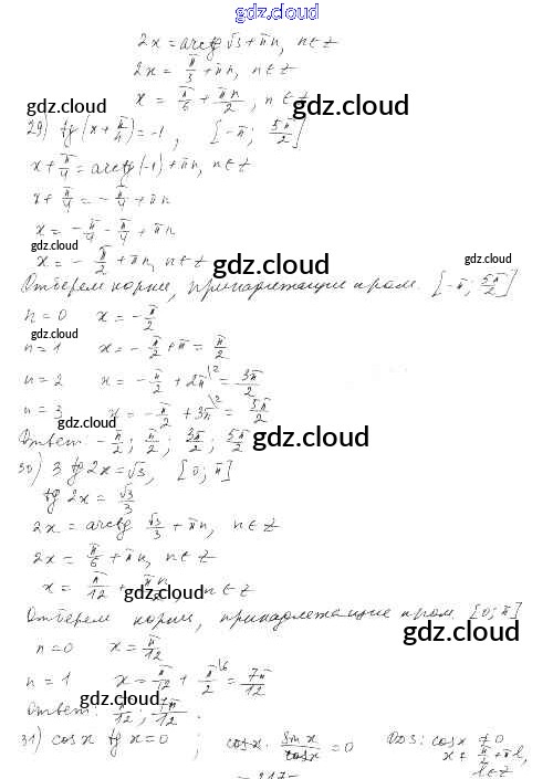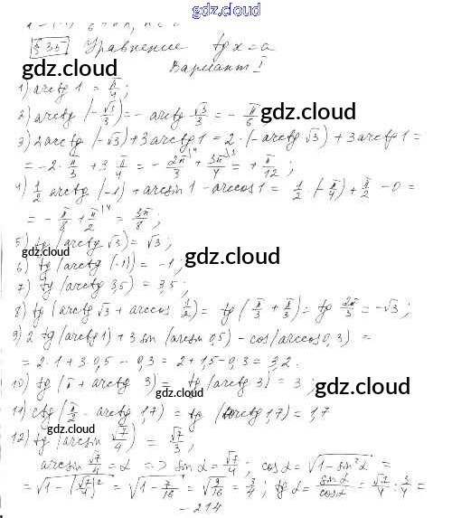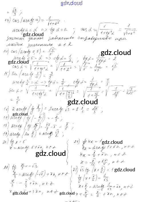 §35. Уравнение tgx = а Ответы к Главе 6. Тригонометрические уравнения по Алгебре 10 класс Дидактические материалы Шабунин Базовый и углубленный уровень Просвещение