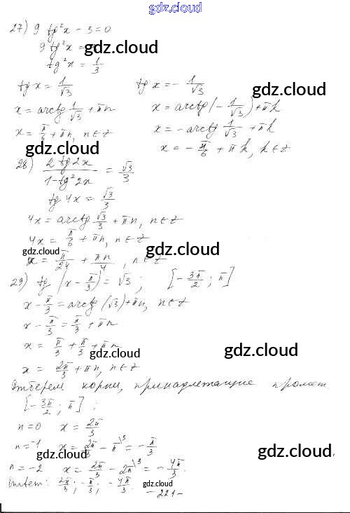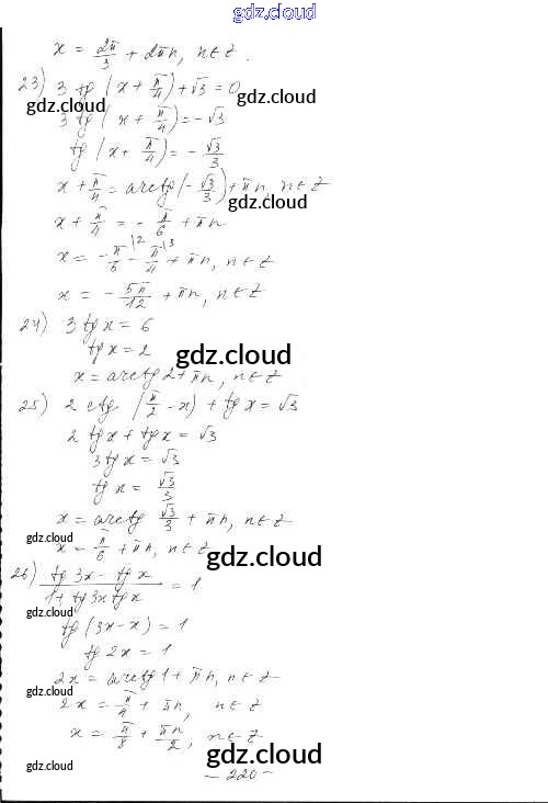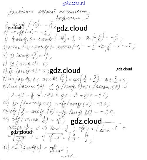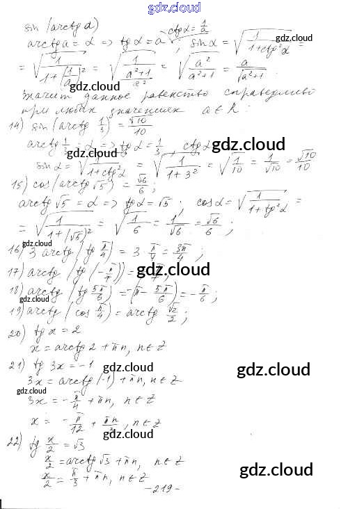 §35. Уравнение tgx = а Ответы к Главе 6. Тригонометрические уравнения по Алгебре 10 класс Дидактические материалы Шабунин Базовый и углубленный уровень Просвещение