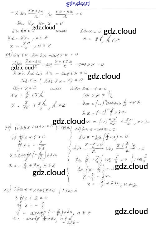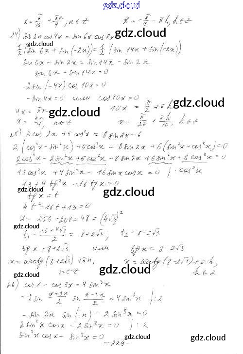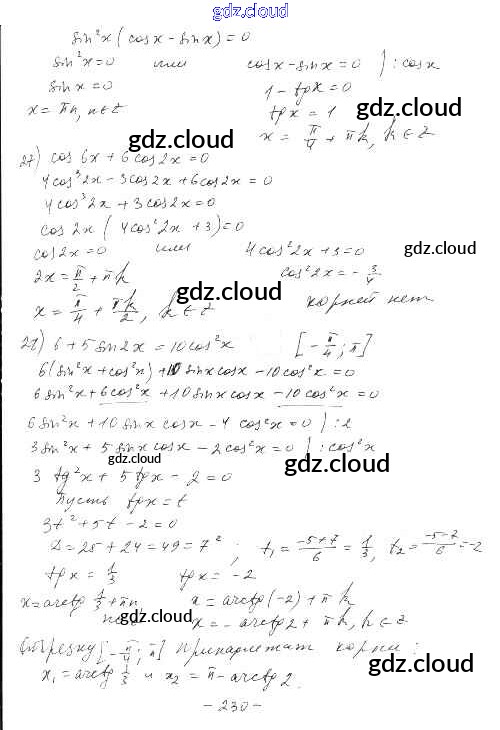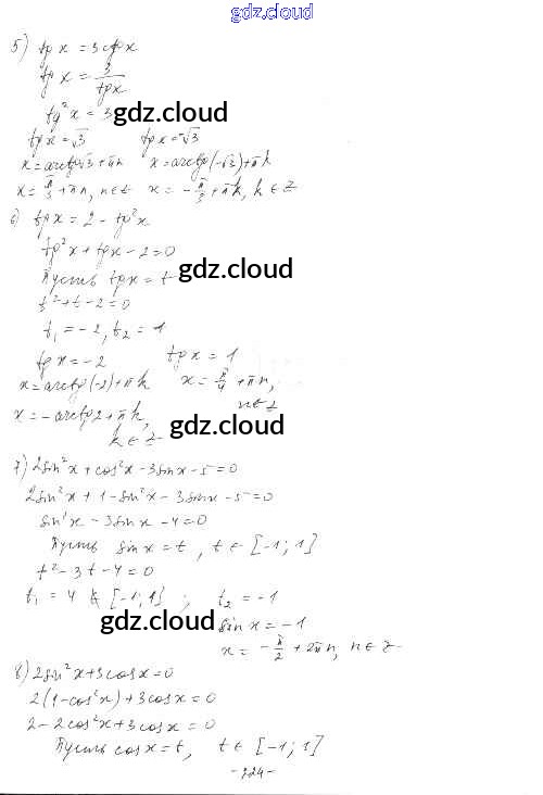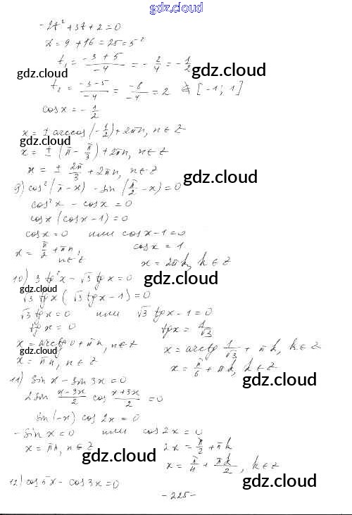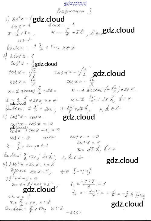 §36. Решение тригонометрических уравнений Ответы к Главе 6. Тригонометрические уравнения по Алгебре 10 класс Дидактические материалы Шабунин Базовый и углубленный уровень Просвещение