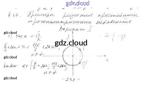 §37. Примеры решения простейших тригонометрических неравенств Ответы к Главе 6. Тригонометрические уравнения по Алгебре 10 класс Дидактические материалы Шабунин Базовый и углубленный уровень Просвещение