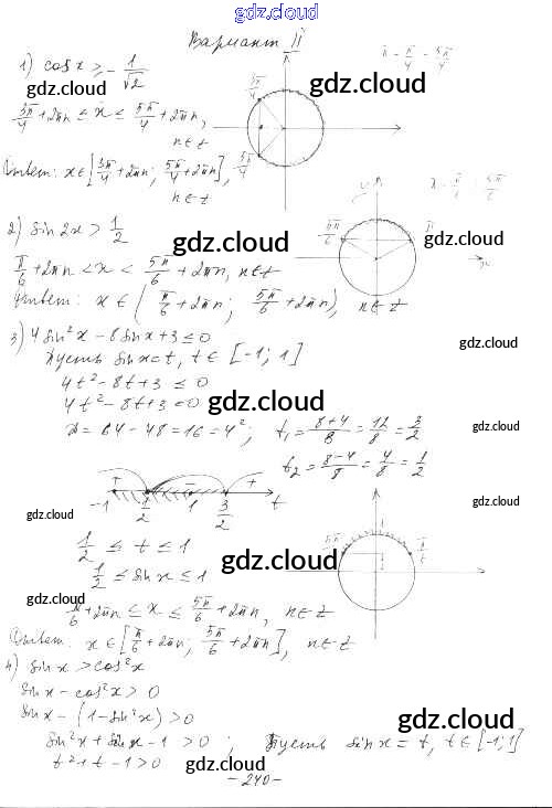 §37. Примеры решения простейших тригонометрических неравенств Ответы к Главе 6. Тригонометрические уравнения по Алгебре 10 класс Дидактические материалы Шабунин Базовый и углубленный уровень Просвещение