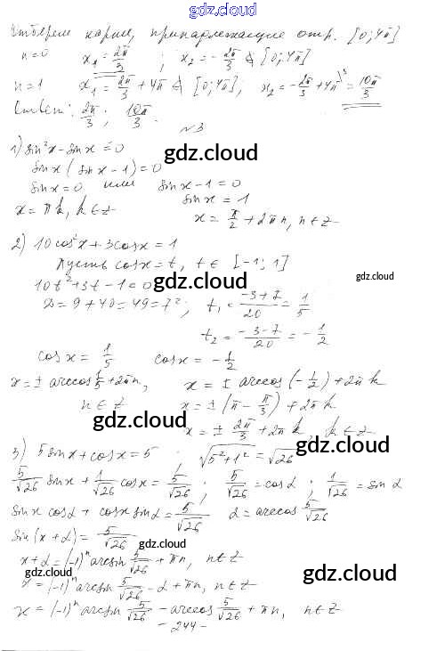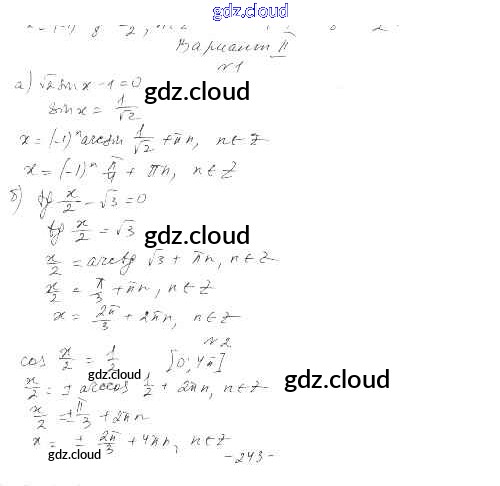 Контрольная работа №6 Ответы к Главе 6. Тригонометрические уравнения по Алгебре 10 класс Дидактические материалы Шабунин Базовый и углубленный уровень Просвещение