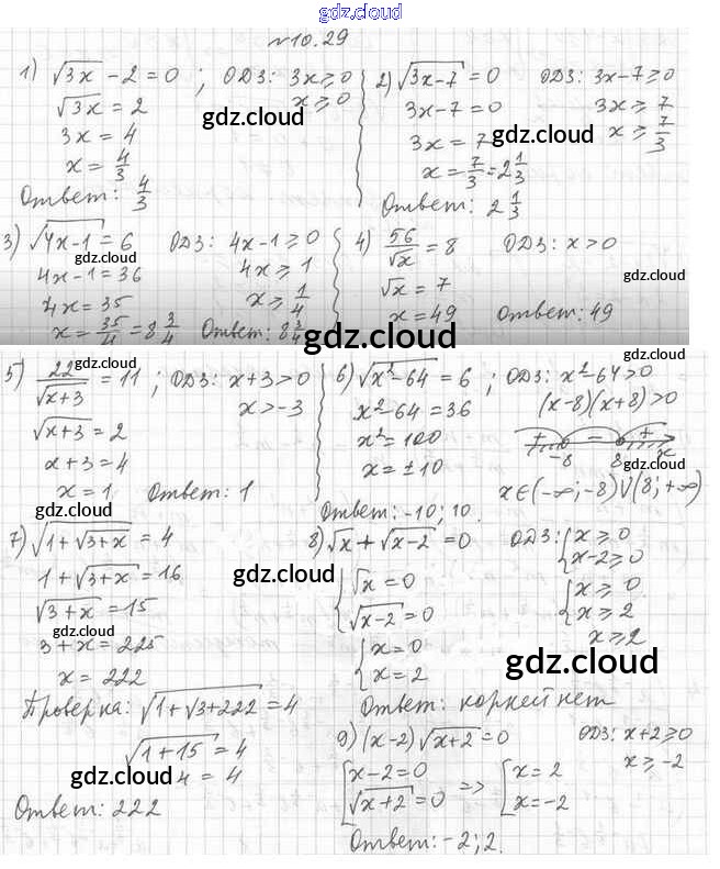 Ответ на задание 10.29 Учебник Алгебра за 10 (десятый) класс Мерзляк, Номировский, Полонский, Якир Алгоритм успеха Базовый уровень 2022