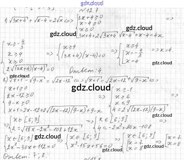 Ответ на задание 12.7 Учебник Алгебра за 10 (десятый) класс Мерзляк, Номировский, Полонский, Якир Алгоритм успеха Базовый уровень 2022