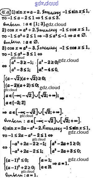 Ответ на задание 15.15 Учебник Алгебра за 10 (десятый) класс Мерзляк, Номировский, Полонский, Якир Алгоритм успеха Базовый уровень 2022
