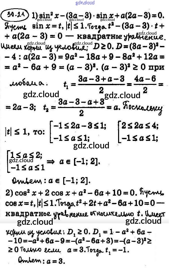 Ответ на задание 30.21 Учебник Алгебра за 10 (десятый) класс Мерзляк, Номировский, Полонский, Якир Алгоритм успеха Базовый уровень 2022