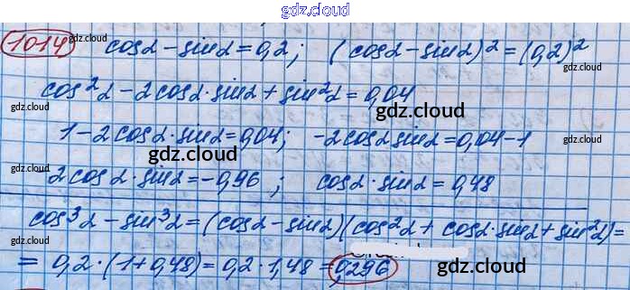 Ответ на задание 1014 Учебник Алгебра за 10 (десятый) класс Колягин, Ткачёва, Федорова, Шабунин Базовый и углубленный уровень 2017