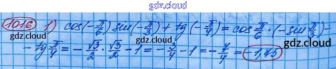 Ответ на задание 1016 Учебник Алгебра за 10 (десятый) класс Колягин, Ткачёва, Федорова, Шабунин Базовый и углубленный уровень 2017