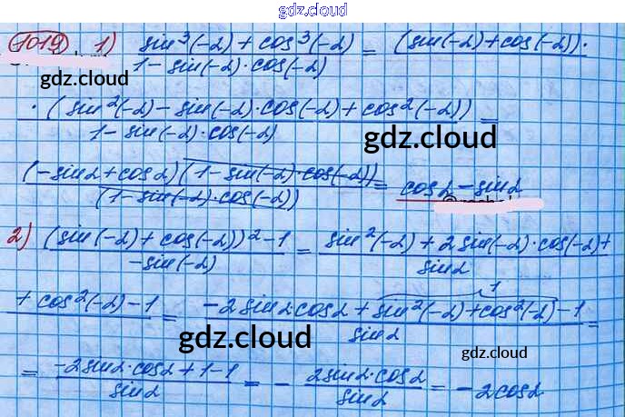 Ответ на задание 1019 Учебник Алгебра за 10 (десятый) класс Колягин, Ткачёва, Федорова, Шабунин Базовый и углубленный уровень 2017