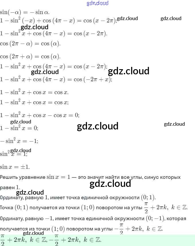 Ответ на задание 1021 Учебник Алгебра за 10 (десятый) класс Колягин, Ткачёва, Федорова, Шабунин Базовый и углубленный уровень 2017