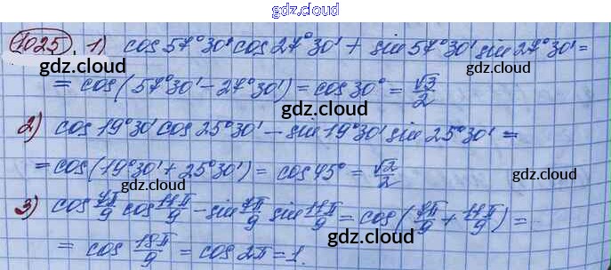 Ответ на задание 1025 Учебник Алгебра за 10 (десятый) класс Колягин, Ткачёва, Федорова, Шабунин Базовый и углубленный уровень 2017