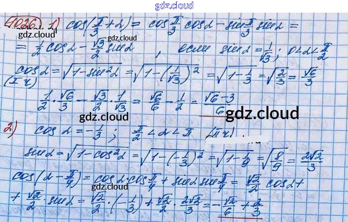 Ответ на задание 1026 Учебник Алгебра за 10 (десятый) класс Колягин, Ткачёва, Федорова, Шабунин Базовый и углубленный уровень 2017