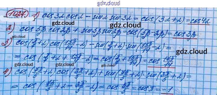 Ответ на задание 1027 Учебник Алгебра за 10 (десятый) класс Колягин, Ткачёва, Федорова, Шабунин Базовый и углубленный уровень 2017