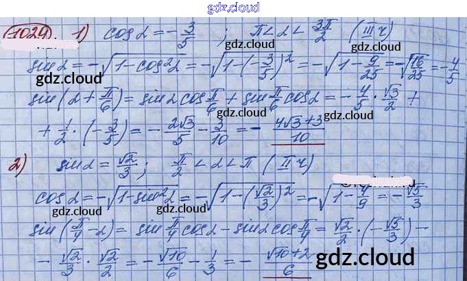 Ответ на задание 1029 Учебник Алгебра за 10 (десятый) класс Колягин, Ткачёва, Федорова, Шабунин Базовый и углубленный уровень 2017