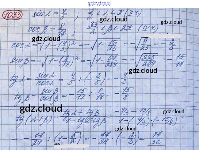 Ответ на задание 1033 Учебник Алгебра за 10 (десятый) класс Колягин, Ткачёва, Федорова, Шабунин Базовый и углубленный уровень 2017
