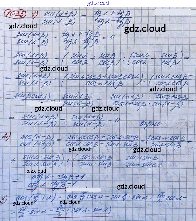 Ответ на задание 1035 Учебник Алгебра за 10 (десятый) класс Колягин, Ткачёва, Федорова, Шабунин Базовый и углубленный уровень 2017