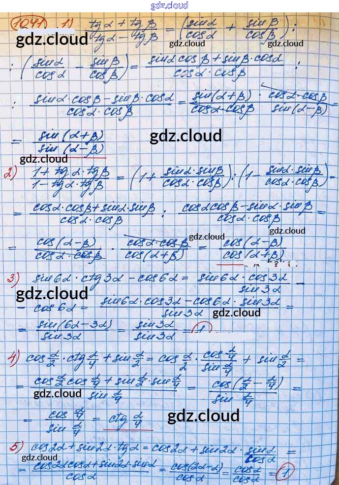 Ответ на задание 1041 Учебник Алгебра за 10 (десятый) класс Колягин, Ткачёва, Федорова, Шабунин Базовый и углубленный уровень 2017