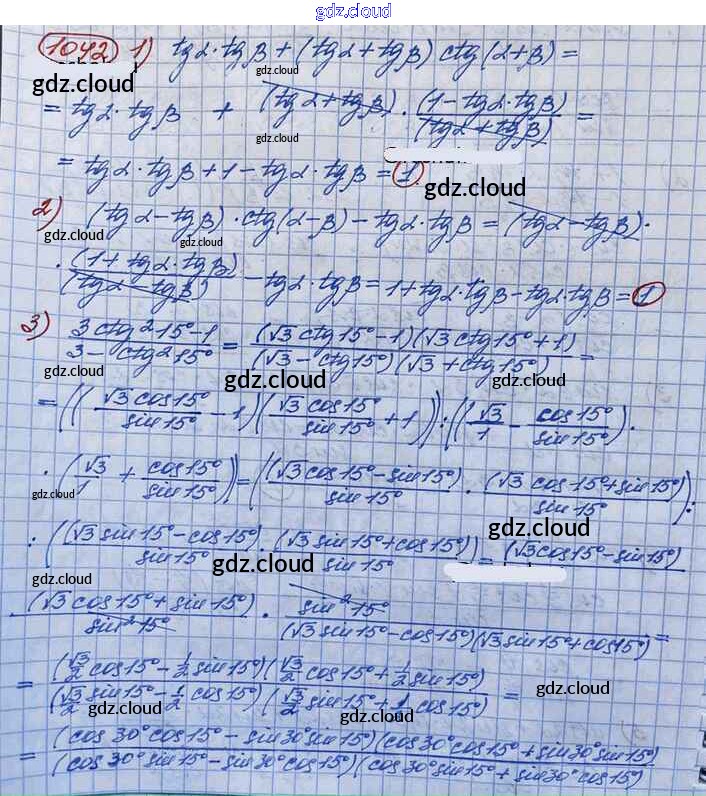 Ответ на задание 1042 Учебник Алгебра за 10 (десятый) класс Колягин, Ткачёва, Федорова, Шабунин Базовый и углубленный уровень 2017