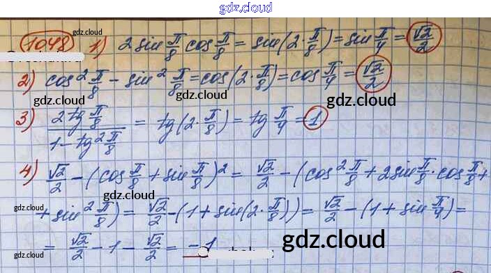 Ответ на задание 1048 Учебник Алгебра за 10 (десятый) класс Колягин, Ткачёва, Федорова, Шабунин Базовый и углубленный уровень 2017