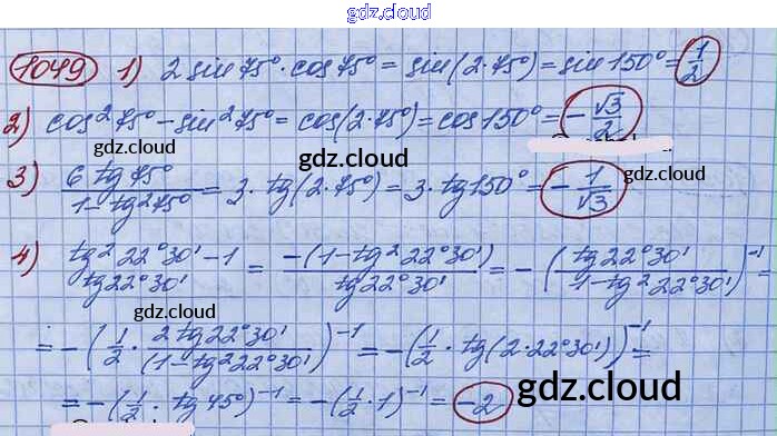 Ответ на задание 1049 Учебник Алгебра за 10 (десятый) класс Колягин, Ткачёва, Федорова, Шабунин Базовый и углубленный уровень 2017