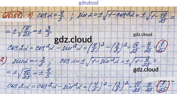Ответ на задание 1051 Учебник Алгебра за 10 (десятый) класс Колягин, Ткачёва, Федорова, Шабунин Базовый и углубленный уровень 2017