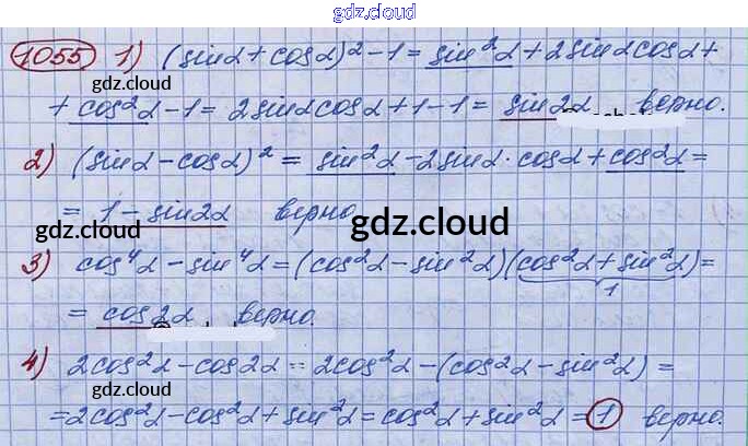 Ответ на задание 1055 Учебник Алгебра за 10 (десятый) класс Колягин, Ткачёва, Федорова, Шабунин Базовый и углубленный уровень 2017