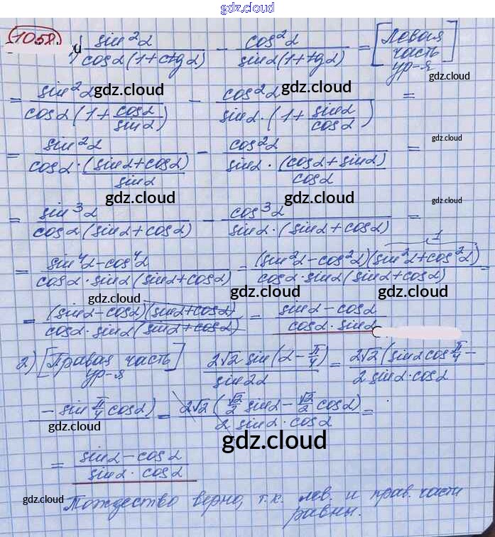 Ответ на задание 1058 Учебник Алгебра за 10 (десятый) класс Колягин, Ткачёва, Федорова, Шабунин Базовый и углубленный уровень 2017