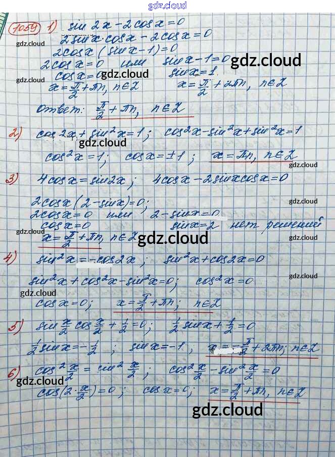 Ответ на задание 1059 Учебник Алгебра за 10 (десятый) класс Колягин, Ткачёва, Федорова, Шабунин Базовый и углубленный уровень 2017